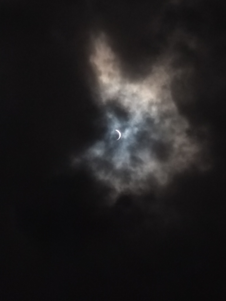 As the moon's shadow covered the solar disk, the total global radiation showed a sharp decline. This reached nearly zero at full coverage. In theory, some radiation should have been measureable, as not all infrared and ultraviolet radiation was blocked. As the moon's shadow retreated, there was a sharp rebound in the incoming radiation. This was particularly dramatic as the totality occurred close to solar noon.